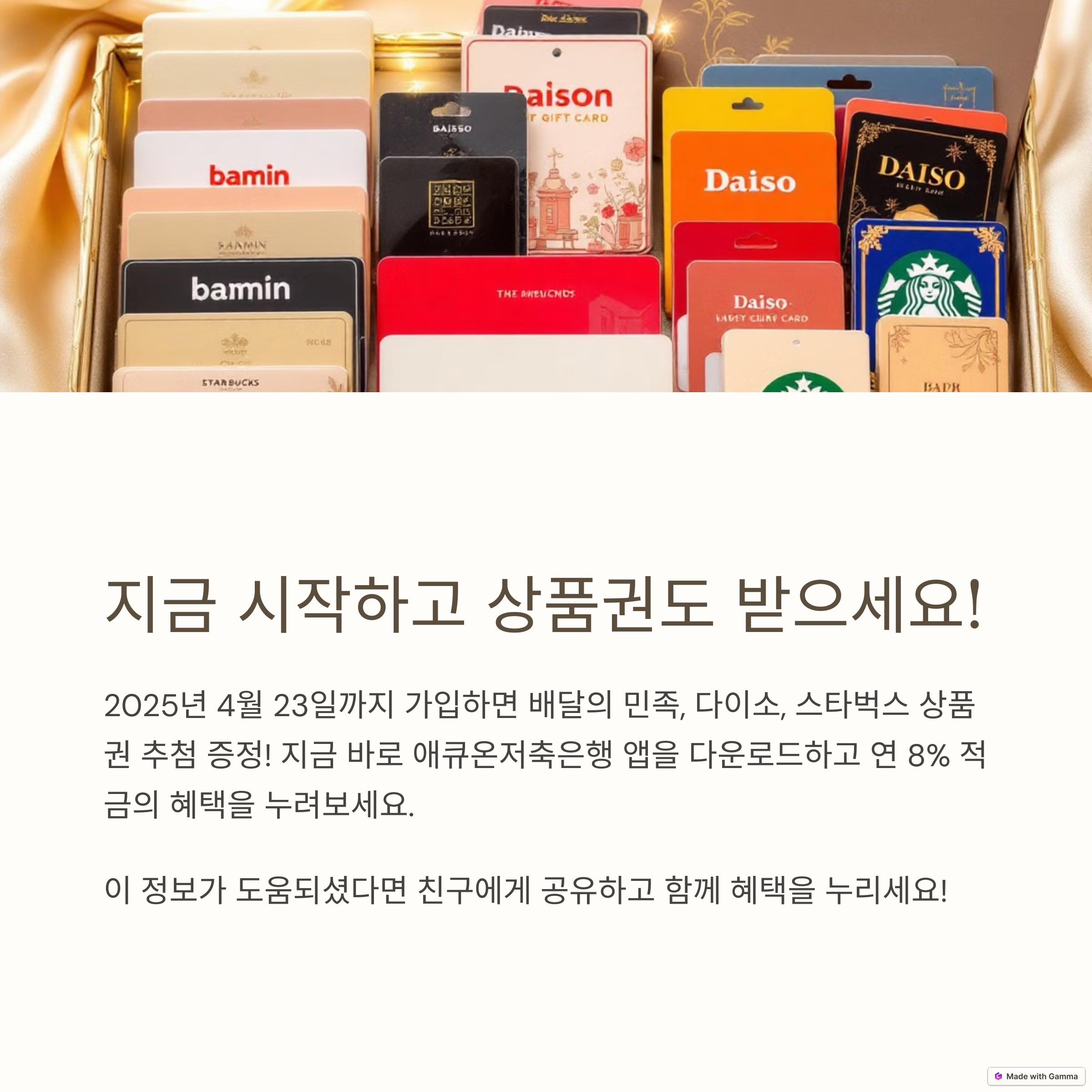 애큐온저축은행은 이번 상품 출시를 기념해 다양한 경품 이벤트를 함께 진행합니다. 총 88명에게 에어팟, 커피 쿠폰, 상품권 등 실생활에서 유용한 경품이 증정됩니다. 적금 가입과 동시에 자동 응모되는 구조로, 고객이 별도 절차 없이 이벤트 혜택도 누릴 수 있습니다. 이러한 방식은 고객의 참여율을 높이고, 상품에 대한 만족도와 충성도를 동시에 유도하는 똑똑한 금융 마케팅 전략이라 평가받고 있습니다.