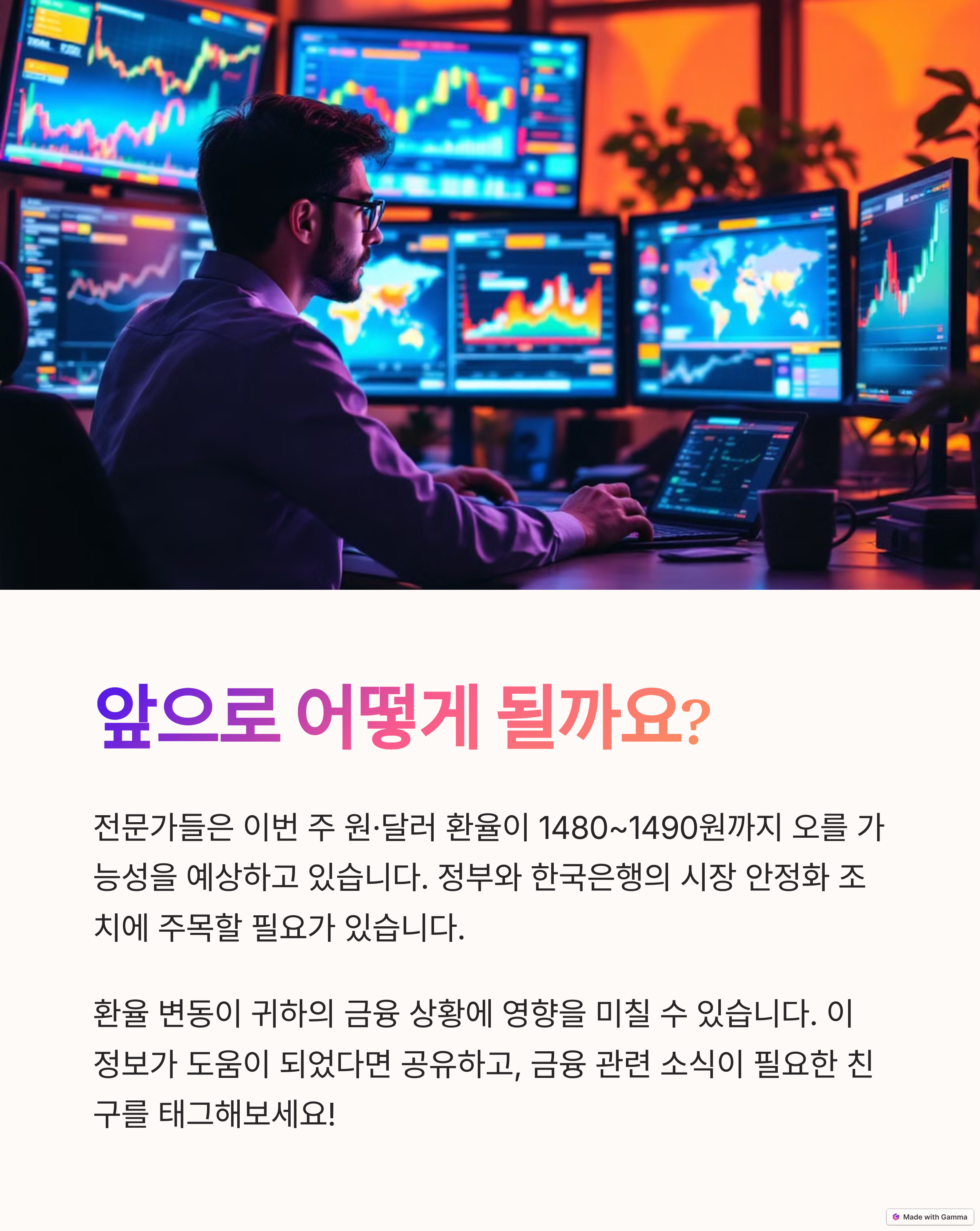 전문가들은 이번 주 환율 상단을 1480~1490원까지 열어둘 필요가 있다고 경고하고 있습니다. 미국의 고율관세 부과 일정이 임박한 가운데, 달러 강세와 아시아 통화 전반의 약세가 계속 이어지고 있으며, 한국의 정치적 불안정이 반복된다면 원화 약세 흐름은 더욱 강하게 전개될 수 있습니다. 이러한 시기에는 기업의 환헤지 전략이 더욱 중요하며, 개인 투자자 역시 변동성 확대 국면에서의 대응 전략을 사전에 점검해야 할 필요가 있습니다.